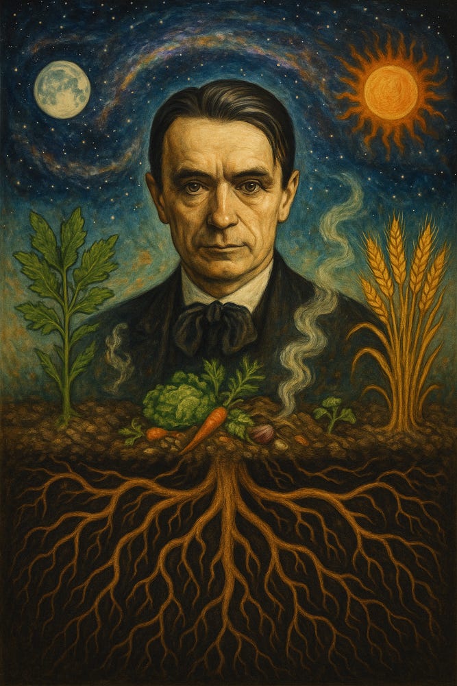 Steiner believed that farms should be treated as self-sustaining organisms. He introduced preparations made from herbs, minerals, and manure, applied in accordance with lunar and cosmic cycles.